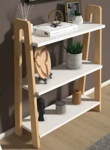 קונסולת כניסה מעוצבת המשלבת אסתטיקה מודרנית עם פתרונות אחסון פרקטיים. המעמד כולל 3 מדפים מרווחים המאפשרים סדר וארגון מקסימלי כבר מהרגע שנכנסים הביתה.
