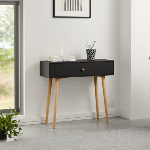 קונסולת כניסה סקנדינבית עם מגירה בעיצוב נורדי נקי ומודרני – הפתרון המושלם לכניסה לבית, מסדרון או פינת סלון.