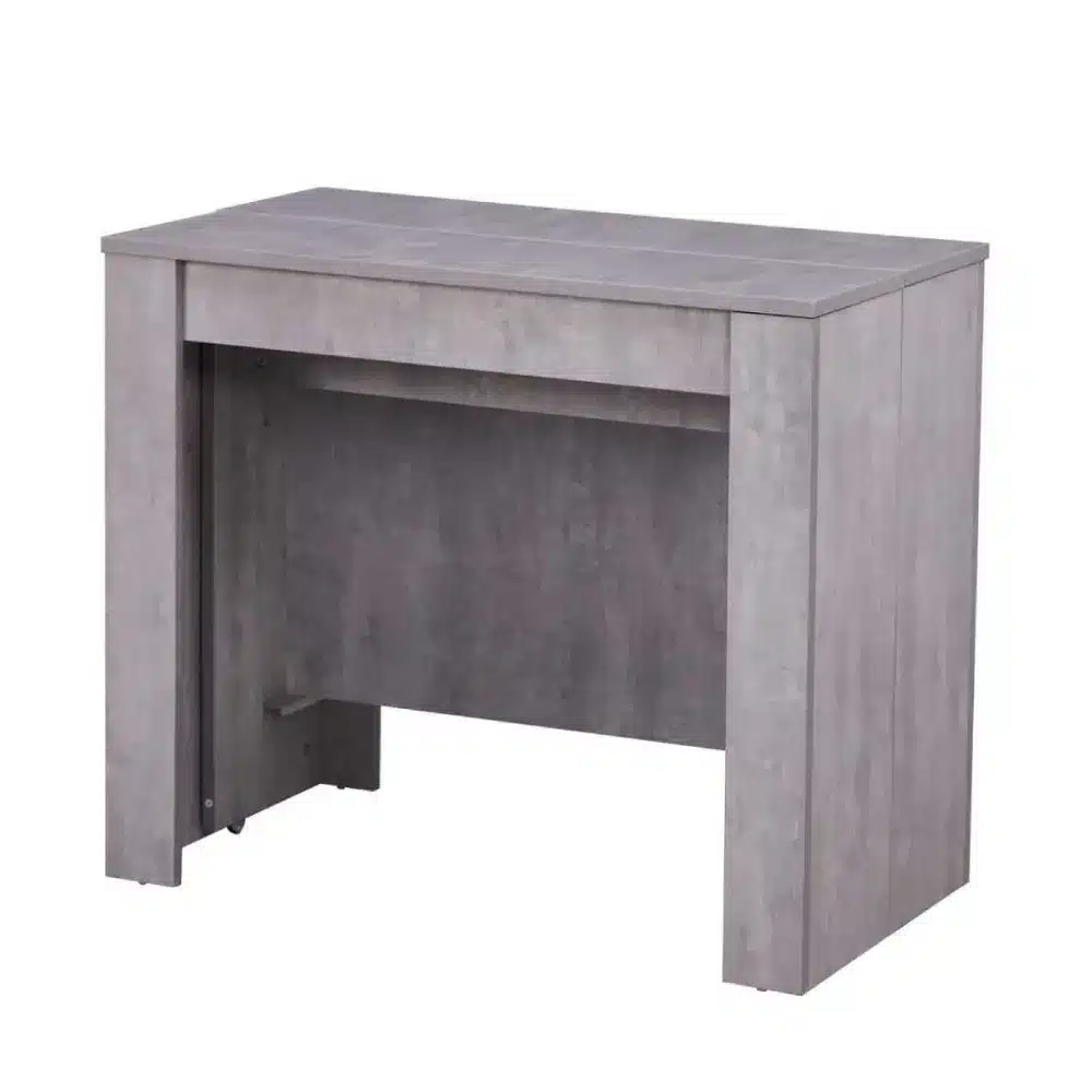 קונסולה נפתחת לשולחן אוכל בעיצוב מודרני בגוון אפור בטון אלגנטי. הקונסולה מתאימה במיוחד לדירות קטנות, סלונים מודרניים וחללים מעוצבים.