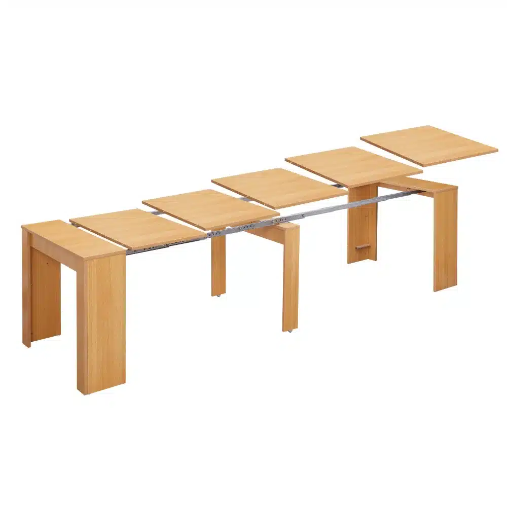 הקונסולה הנפתחת זמינה בגוון עץ טבעי המתאים לכל סגנון עיצוב מודרני: