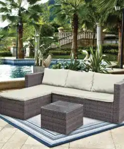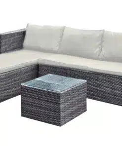 פינת ישיבה פינתית ולגינה  עשויה מסיב ראטן סינטטי איכותי עמיד וקל לתחזוקה , מורכב מספה , שזלונג עם כריות ישיבה וגב ושולחן קפה .מסגרת הסט עשויה מתכת חזקה יציבה ממתכת אל חלד עמידה בפני נזקי מזג האוויר.