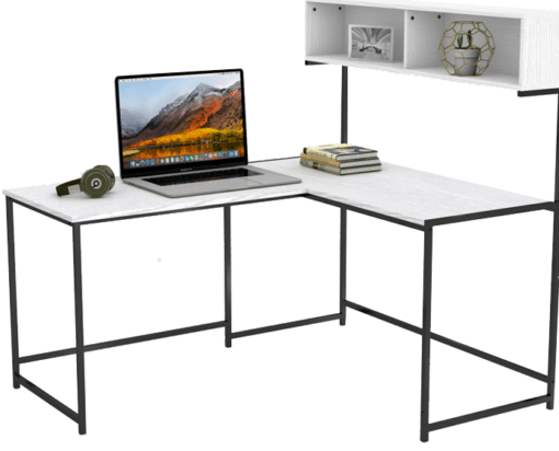השולחן כולל משטח עבודה מרווח בצורת L המאפשר ארגון יעיל של סביבת העבודה, עם מספיק מקום למחשב, מסמכים וציוד משרדי. מדף עליון מובנה מספק אחסון נוח לספרים, קלסרים ופריטי נוי, בעוד המסגרת המינימליסטית מתכת שחורה מעניקה לשולחן מראה עכשווי ואלגנטי.