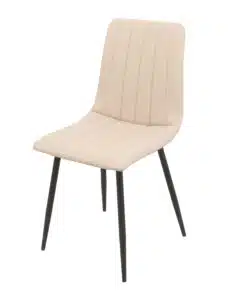 כסאות בצבע שמנת לפינת אוכל מרופדים היטב בדמוי עור איכותי ועמיד בצבע שמנת וספוג איכותי בצפיפות גובה, מסגרת הכסאות עשויה ממתכת אל חלד חזקה ויציבה בצבע שחור.