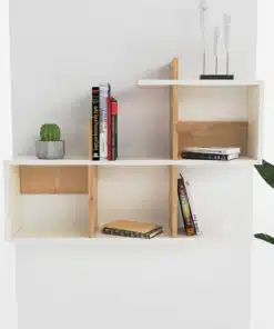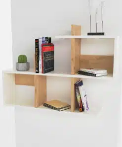 מדף מעוצב בסגנון כוורת משולב לבן ועץ . המדף עשוי משבבית דחוסה בחיפוי מלמין איכותי .