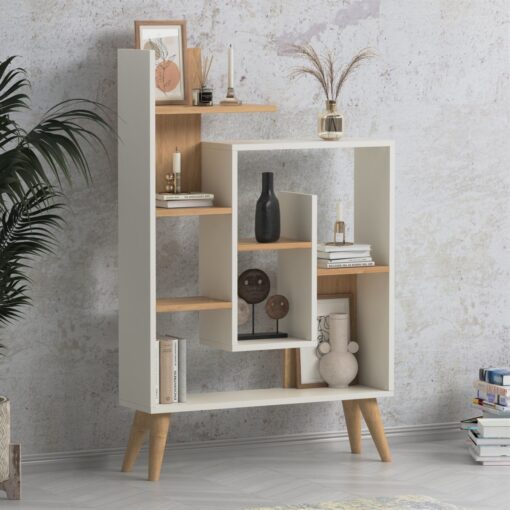 רגליים מוגבהות: הרגליים המוגבהות לא רק מעניקות נופך אלגנטי וחיות לחלל, אלא גם מאפשרות ניקיון קל ונוח של השטח מתחת לספרייה.