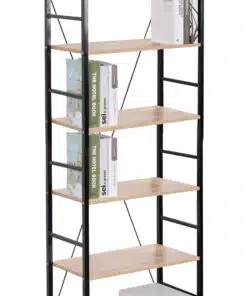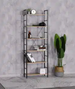 ספריה מעוצבת עם 6 מדפים , מתאימה לסלון או לחדר עבודה . המסגרת עשויה ממתכת אל חלד בצבע שחור חזקה ויציבה, המדפים עשויים משבבית דחוסה בחיפוי מלמין איכותי ועמיד.