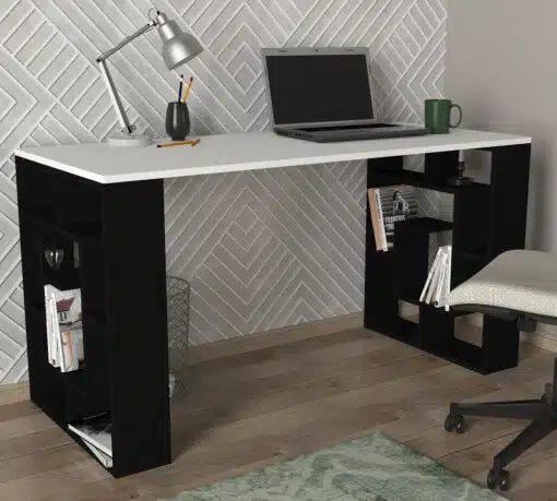 שולחן כתיבה מעוצב שחור-לבן – שילוב מושלם של פונקציונליות ועיצוב