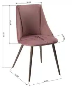 כסאות לפינת אוכל בבד קטיפה ורוד עתיק , הכסאות מרופדים היטב עם ספוג איכותי ועמיד בצפיפות גובה ובד קטיפה איכותי ונעים למגע, מסגרת הכיסא עשויה ממתכת אל חלד בגימור דמוי עץ. הכסאות נוחים מאוד לישיבה ומעוצבים היטב וישתלבו לצד סגנונות ועיצובים שונים בסגנון קלאסי וכפרי.