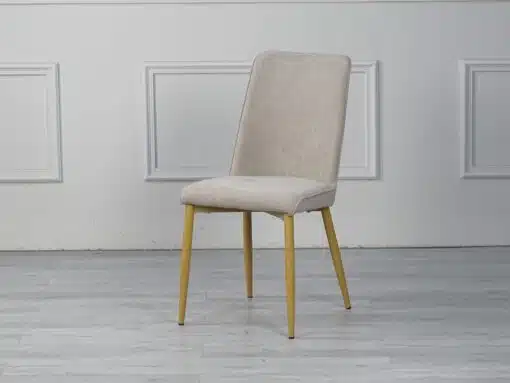 הכסאות עשויים מבד לבז' איכותי ועמיד, עם ריפוד ספוג נוח. רגלי הכיסא עשויות מעץ בהיר, המספקות מראה טבעי ורגוע.