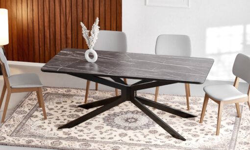 שולחן פינת האוכל הזה הוא הפתרון המושלם למי שמחפש שולחן פינת אוכל אלגנטי ומרהיב. הגימור שיש אפור עם גידים יוצר מראה יוקרתי ומזמין, והרגלי מתכת המושחרות מעניקות לשולחן מראה ססגוני ומיוחד.
