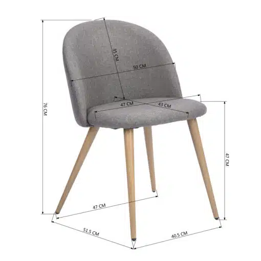כסאת פינת אוכל מרופדים היטב בבד אפור איכותי ועמיד וספוג איכותי . רגלי הכסאות עשויות מתכת אל חלד בגוון עץ. הכסאןת מועצבים בסגנון קלאסי וישתלבו לצד עיצובים וסגנונות שונים.