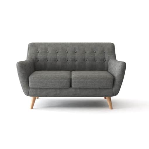 ספה דו מושבית בבד אפור איכותי עמיד , הספה מרופדת היטב בספוג איכותי בצפיפות גובה ומערכת קפיצים מעולה, מסגרת הספה עשויה מעץ מלא.