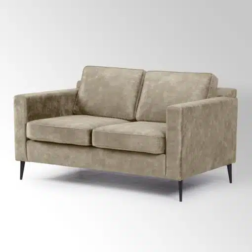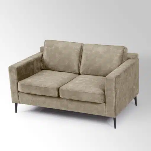 ספה מעוצבת מרופדת בבד מיקרופייבר בגוון חום בהיר – מוקה , הספה מרודפת היטב בספוג איכותי עמיד לאורך זמן , מסגרת הספה עשויה מעץ מלא עם מערכת קפיצים איכותית המבטיחה נוחות ועמידות לארוך זמן, רגלי הספה עשויות מתכת אל חלד.