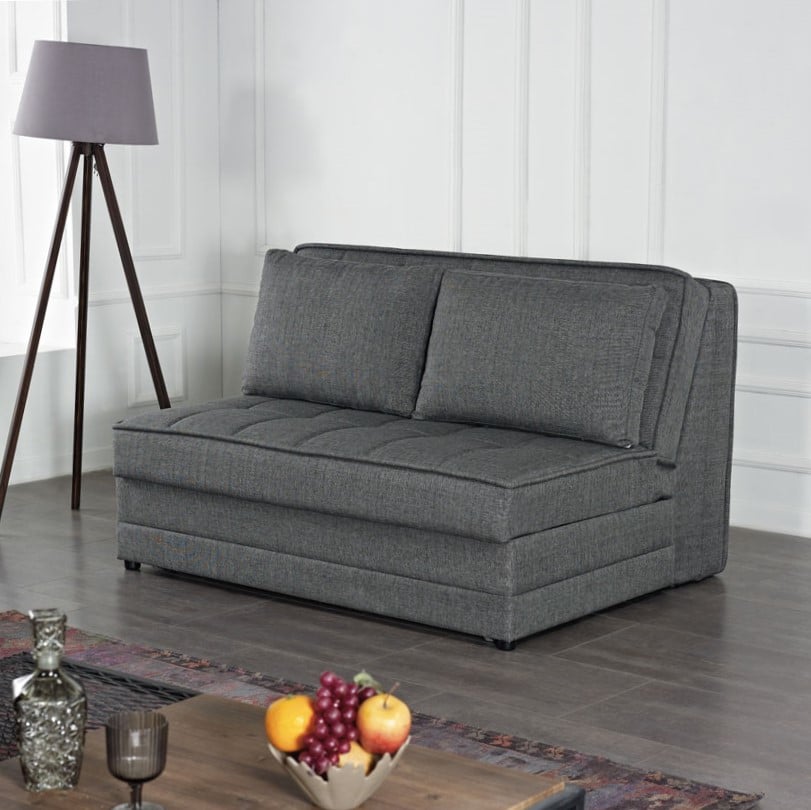 ספה זוגית נפתחת עם ארגז מצעים בבד אפור