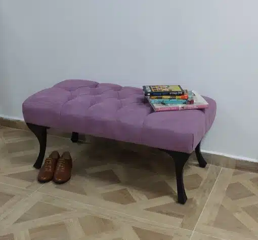 ספסל כניסה מעוצב לבית מרופד היטב בבד קטיפה סגול , ספוג איכותי בצפיפות גבוה ובעיצוב קפיטונאז' עם כפתורים . אז אם גם אתם מחפשים ספסל כניסה מרופד לכניסה לבית או לחדר השינה או לסלון הספסל הזה מושלם עבורכם – סטייל מאסטר רהיטים
