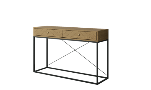 שידת כניסה לבית עם מגירות עשויה מעץ מתועש עם חיפוי מלמין בגוון עץ אלון.