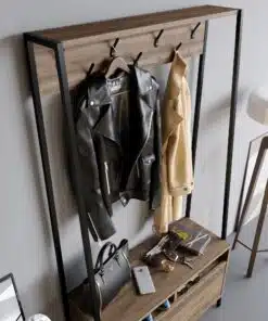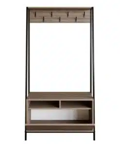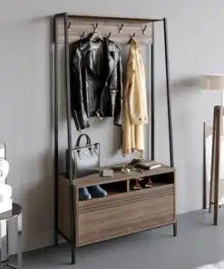 ארון כניסה לבית לתליית מעילים ותיקים עם 7 ווי תלייה שני מדפים לאחסון וקלאפה גדולה לאחסון רב תכליתי.