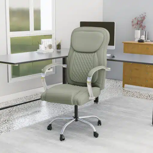 הכיסא מעוצב בסגנון מנהלים קלאסי ומרופד בחומר דמוי עור יוקרתי המעניק מראה מקצועי ומתוחכם לכל חלל עבודה. החומר נבחר בקפידה כדי להבטיח עמידות לאורך זמן תוך שמירה על מראה אלגנטי וקל לתחזוקה.