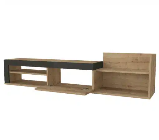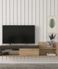 - איכות: עשוי משבבית דחוסה עמידה וחיפוי מלמין איכותי בגוון עץ משולב עם אפור פחם, המעניק לו מראה טבעי ומודרני.