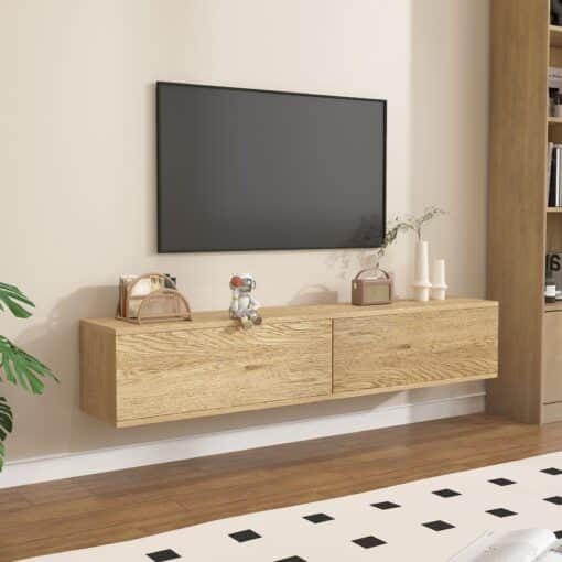 מזנון צף מודרני ויוקרתי הנתלה לקיר ומעניק לסלון או לחלל המגורים מראה מינימליסטי ומעוצב. מזנון תלוי זה מציע פתרון אחסון אלגנטי וחסכוני בשטח, המתאים במיוחד לעיצוב פנים מודרני ולבתים עם מגבלות שטח.