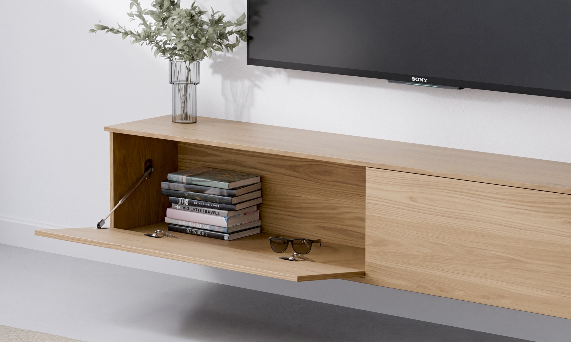 מזנון "שדואו פלוט" בגוון אלון טבעי מביא אל ביתכם את ההרמוניה המושלמת בין טבעיות לחדשנות. העיצוב המרחף, ללא נקודות עיגון נראות לעין, יוצר אשליית ריחוף מרהיבה שמעניקה לסלון שלכם מראה עכשווי ואוורירי. גוון האלון החמים והאותנטי משלב את יופיו הטבעי של העץ עם קווים מודרניים ונקיים, ויוצר נוכחות עיצובית שהיא בו-זמנית מזמינה ומתוחכמת.