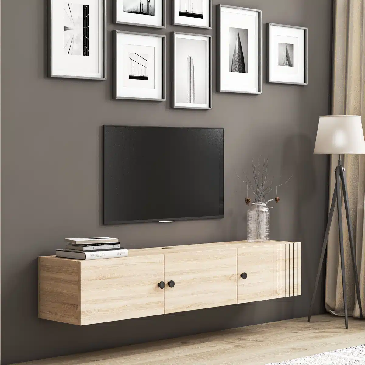 מזנון צף לטלוויזיה בגוון עץ רוחב 180 ס"מ