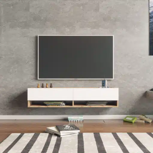 המזנון מושלם למיקום מתחת לטלוויזיה כיחידת בידור מרכזית. הוא מספק מקום אידאלי לאחסון מכשירי חשמל כמו דקודר, נגן DVD, קונסולות משחק, או מערכת סטריאו, תוך שמירה על מראה נקי ומאורגן. הגובה הנמוך מאפשר צפייה נוחה בטלוויזיה.