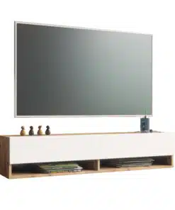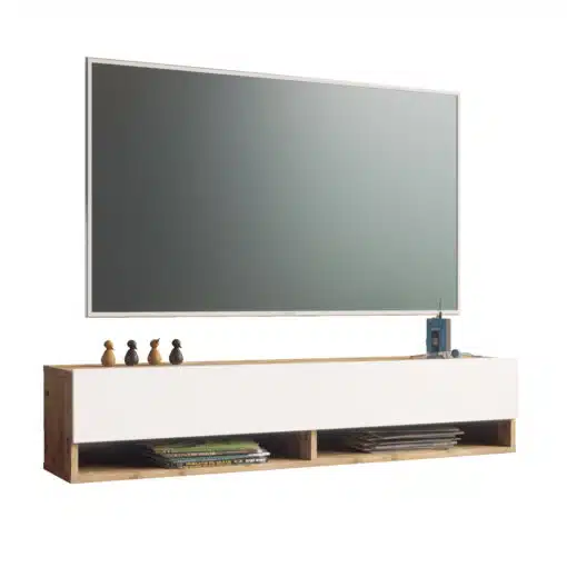 המזנון מעוצב בשילוב אלגנטי של גוון אורון חם ולבן טהור, המייצר ניגוד מרהיב העין ויוצר נקודת מוקד עיצובית מרכזית בסלון. השילוב הייחודי הזה מעניק למזנון מראה מתוחכם ועכשווי, ומתאים במושלם לסגנונות עיצוב מודרניים, סקנדינביים ומינימליסטיים. הגוון האורון מוסיף חמימות טבעית לחלל, בעוד הלבן מקנה אלגנטיות ותחושת ניקיון.