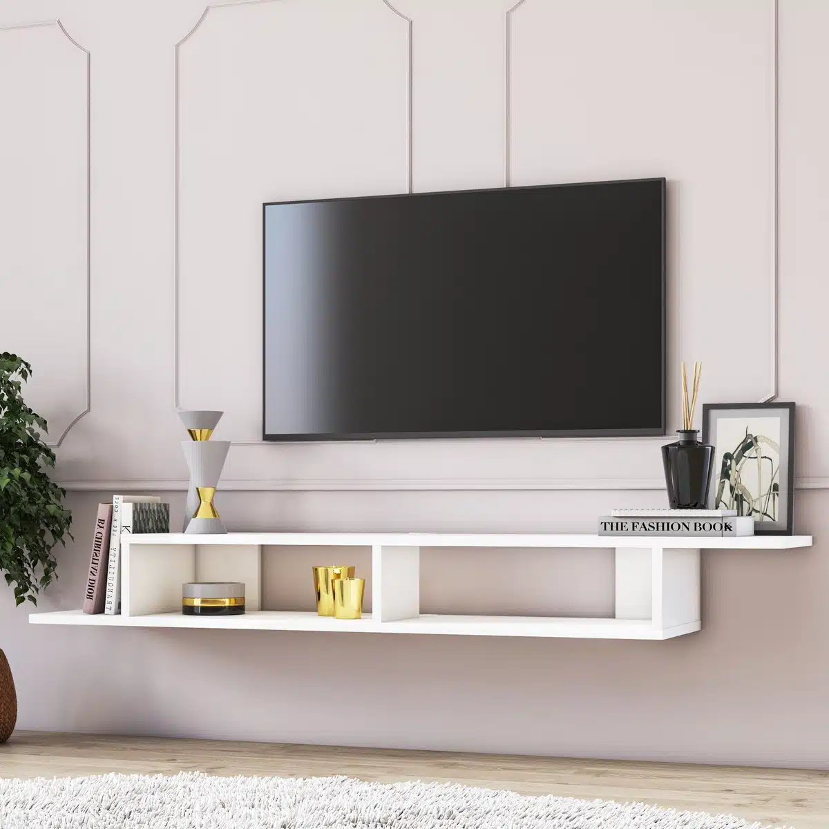 מזנון צף לסלון רוחב 146 ס"מ עשוי מעץ מתועש עם חיפוי מלמין בצבע לבן.