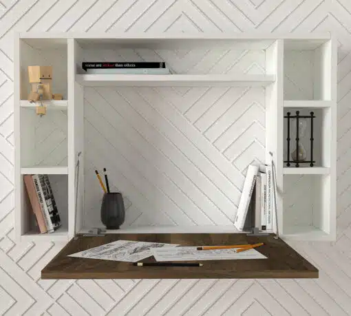 שולחן מחשב חדשני ופונקציונלי, המתקפל בקלות לקיר ויוצר מרחב עבודה נוח ומאורגן. מעוצב בקווים נקיים ומינימליסטיים, השולחן מתאים לכל סגנון עיצוב וישתלב בצורה מושלמת בכל חדר.