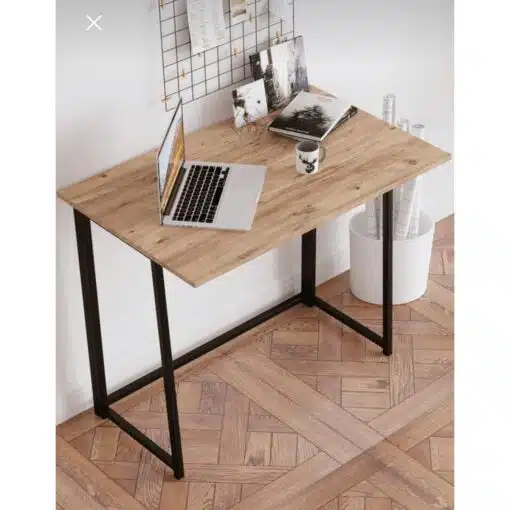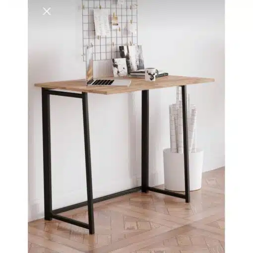 שולחן כתיבה מתקפל , פלטת השולחן עשויה מעץ מתועש מסגרת השולחן עשויה ממתכת אל חלד חזקה ויציבה בצבע שחור.