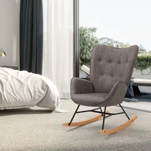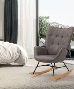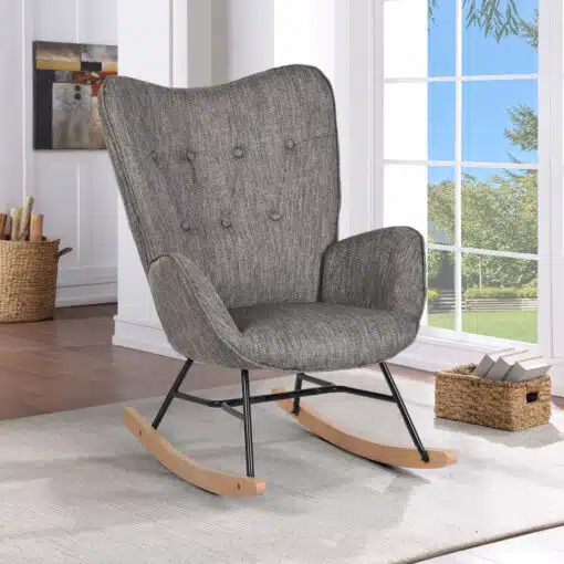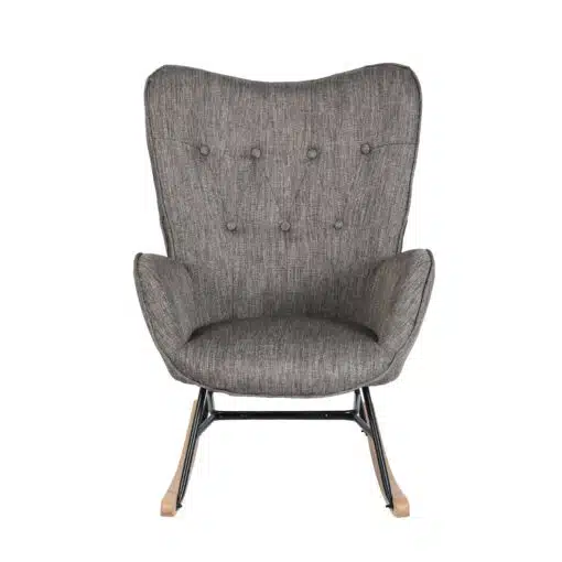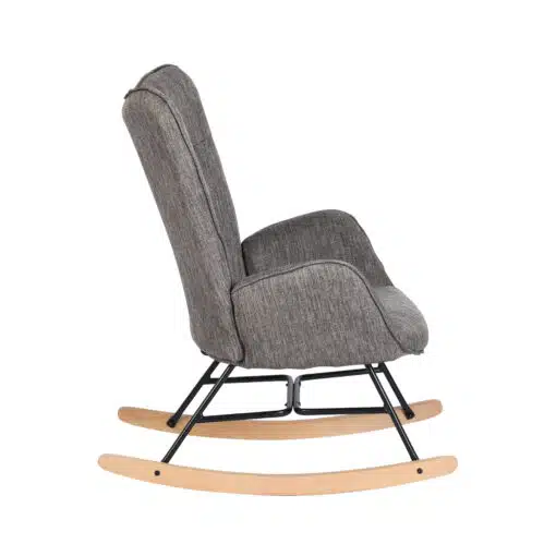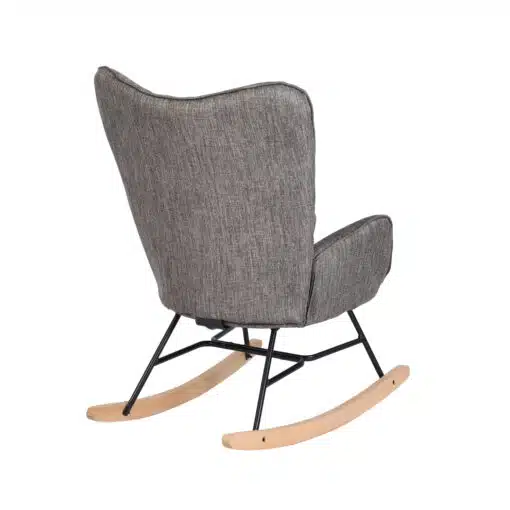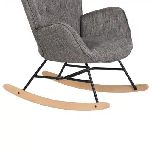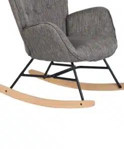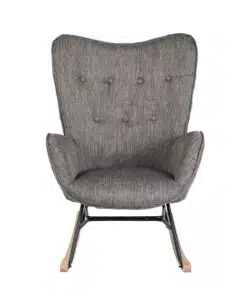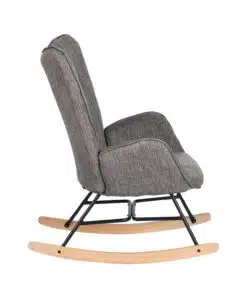 כורסת נדנדה מרופדת היטב בספוג איכותי בצפיפות גבוה ובד אפור עמיד ונעים למגע, מסגרת הכורסא עשויה ממתכת אל חלד משולב עם עץ מלא.