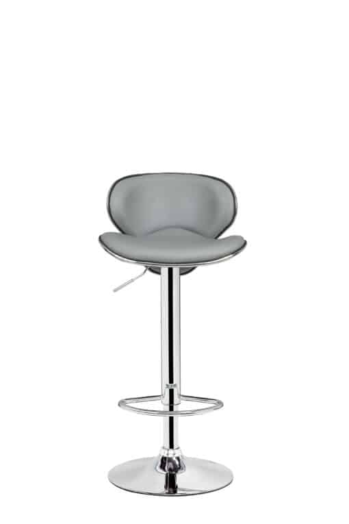 המושב מרופד היטב בספוג איכותי ודמוי עור אפור, המבטיחים נוחות מרבית גם בישיבה ממושכת. רגל הכיסא עשויה מתכת בחיפוי כרום ניקל מבריק, המעניק יציבות וחוזק.