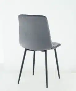 כסאות לפינת אוכל מעוצבים מרופדים בבד קטיפה אפור ספוג איכותי בצפיפות גבוה , רגלי הכיסא עשויות ממתכת אל חלד איכותית חזקה ויציבה בגוון שחור .