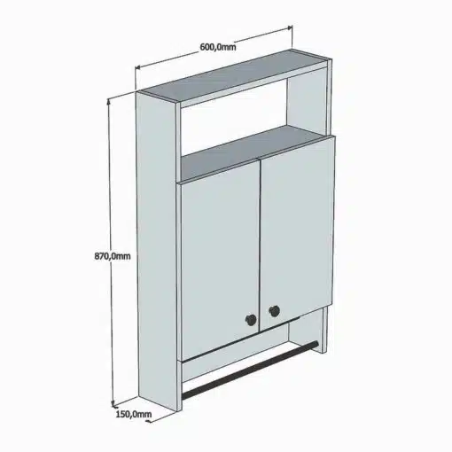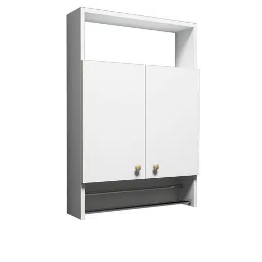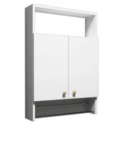- שני מדפים סגורים לאחסון נוח של כלי רחצה, תמרוקים ותרופות.