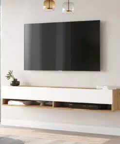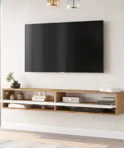 מזנון טלוויזיה תלוי עם שני תאי אחסון ןמדף תחתון , עשוי משבבית דחוסה עם חיפוי מלמין איכותי יצוק בתו תקן אירופאי.