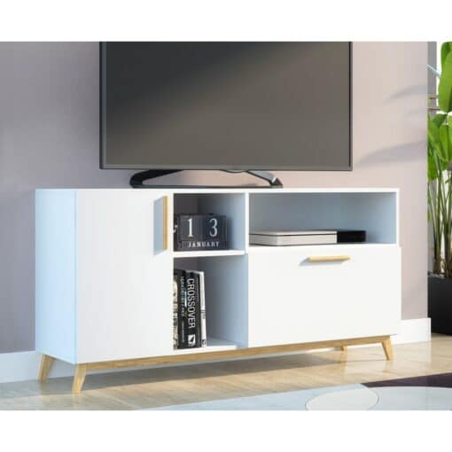 שידת טלוויזיה גבוה בעיצוב מינימליסטי – עיצוב מודרני עם רגלי עץ