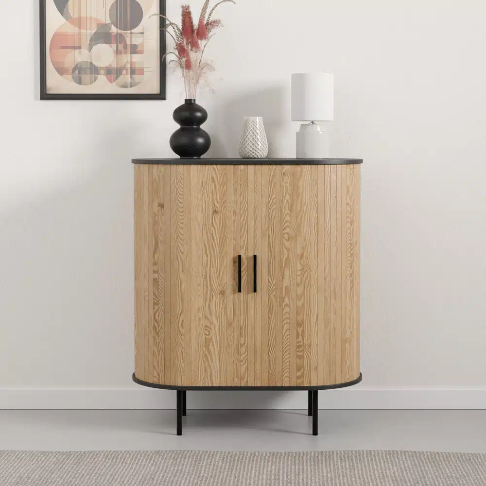 - סגירת אקורדיון: סגירת האקורדיון הייחודית מוסיפה נופך עיצובי ייחודי ומאפשרת גישה נוחה למדפים ולתיבות האחסון.