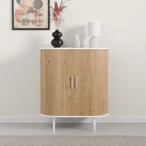 - סגירת אקורדיון: סגירת האקורדיון הייחודית מוסיפה נופך עיצובי ייחודי ומאפשרת גישה נוחה למדפים ולתיבות האחסון.