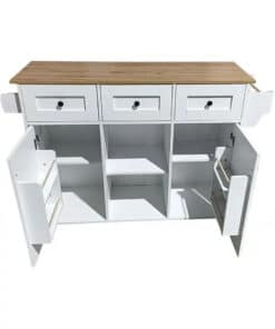 עם מגירות עמוקות, מדפים פנימיים ודלתות טריקה שקטה, מתקבל פתרון אחסון חכם ונוח במיוחד. בנוסף, חלל פתוח מרכזי מאפשר גישה מהירה לפריטים או הצגת אלמנטים דקורטיביים.