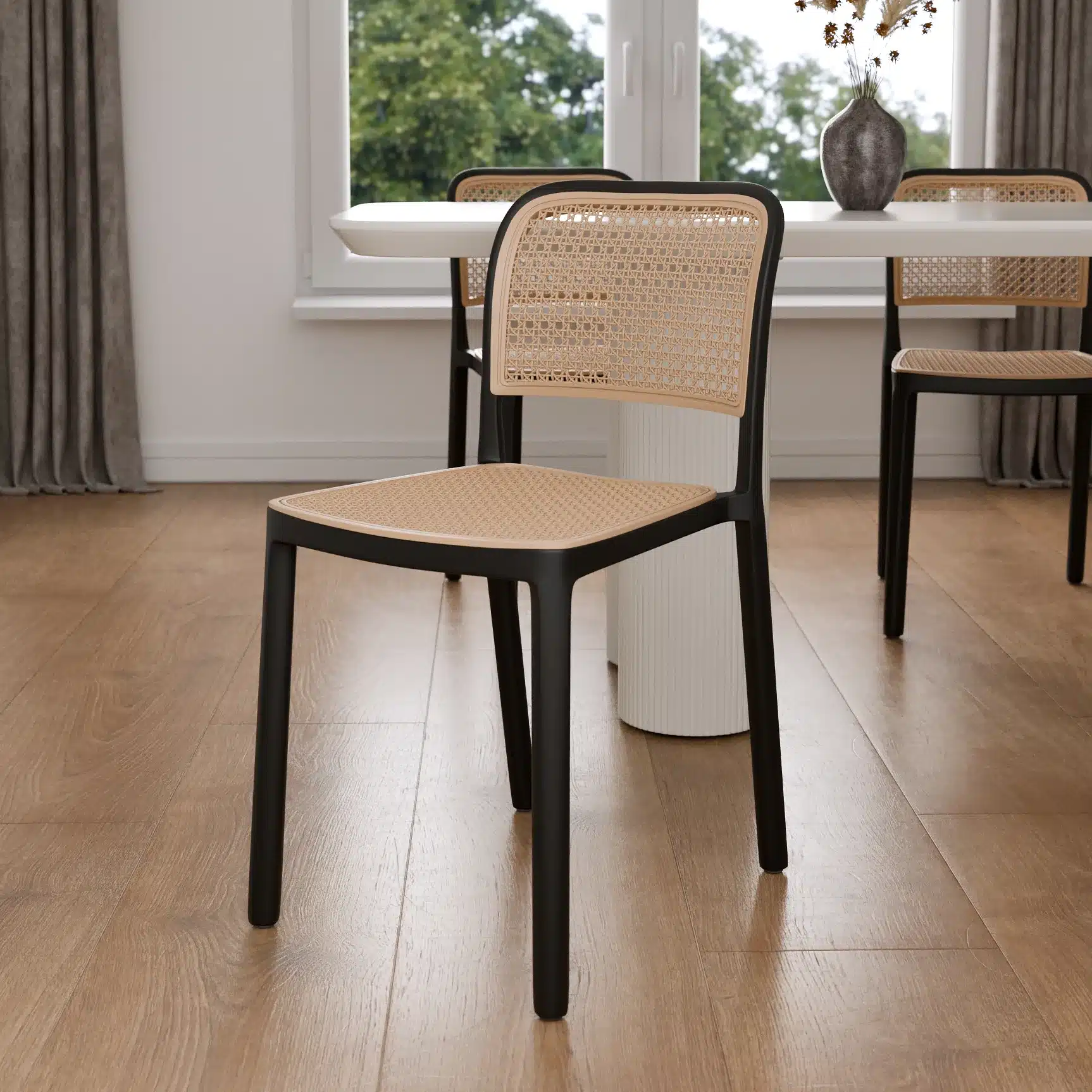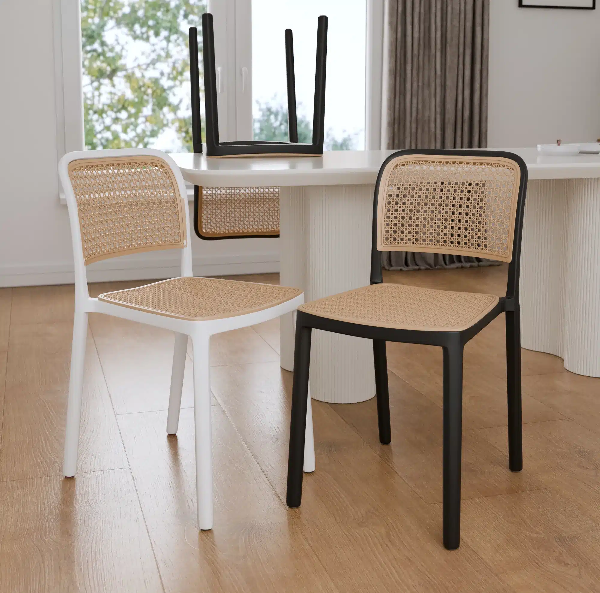 כיסא אוכל פנים וחוץ דמוי ראטן זמין ב-2 גוונים מעוצבים המתאימים לכל סגנון עיצוב מודרני: