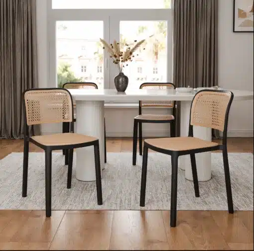 העיצוב המודרני והנקי של כיסא אוכל פנים וחוץ דמוי ראטן משלב בהרמוניה מושלמת פלסטיק חזק ועמיד עם גימור דמוי ראטן אלגנטי. המבנה החזק והיציב של הכיסא נבנה כדי לעמוד בשימוש יומיומי אינטנסיבי, תוך שמירה על מראה אסתטי מושך שמשדרג כל חלל. העיצוב הייחודי משלב אלגנטיות מודרנית עם פונקציונליות מרבית, מה שהופך אותו לבחירה מעולה עבור בתים בעלי סגנון עכשווי.