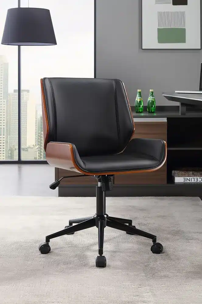 כיסא המשרד עם גב העץ זמין בגוון אחד המותאם לעיצוב מודרני:
