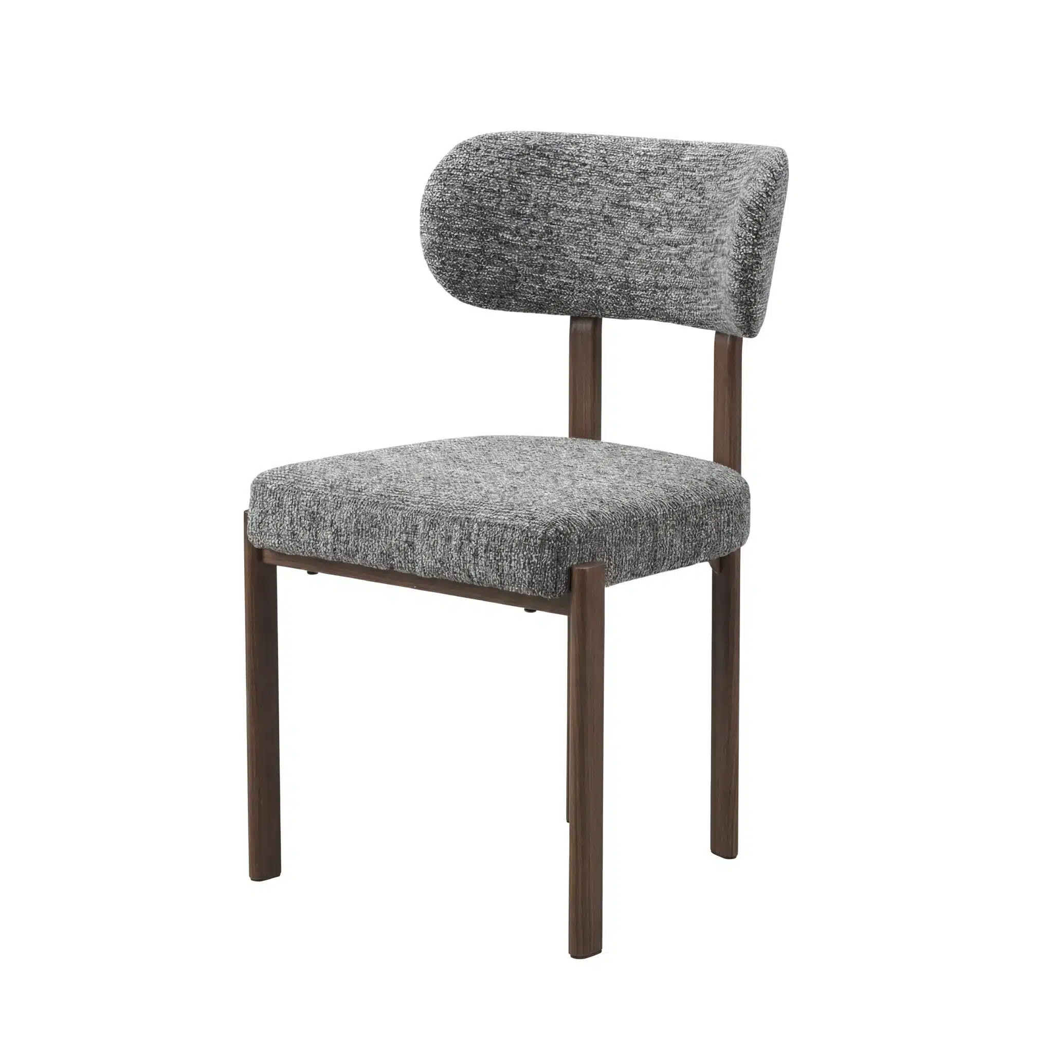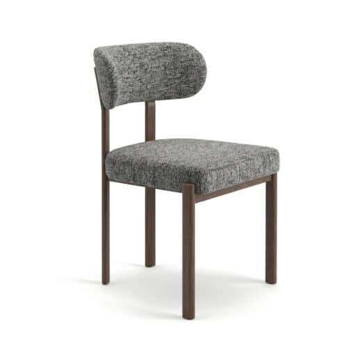כיסא אוכל מרופד מעוצב בקווים נקיים המשלב שלד מתכת חזק בגוון אגוז עם ריפוד רך ומפנק. הכיסא מושלם לפינות אוכל מודרניות ומעניק חוויית ישיבה נוחה לאורך זמן.