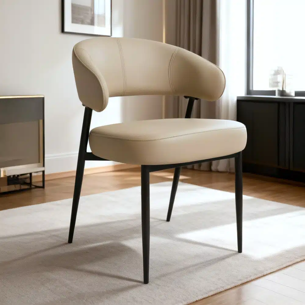 כיסא פינת אוכל מרופד דמוי עור בעיצוב מודרני ואלגנטי, המשלב אסתטיקה יוקרתית עם נוחות יוצאת דופן. הכיסא מושלם לפינות אוכל ביתיות, פינות קפה ומרחבי ישיבה מעוצבים.
