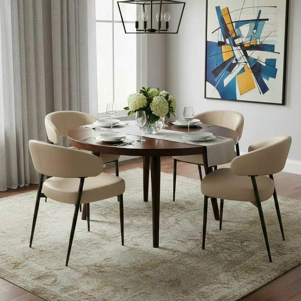 - שולחן אוכל כהה: שלבו את גרסת השמנת או הבז' עם שולחן כהה לקונטרסט מרשים ואלגנטי