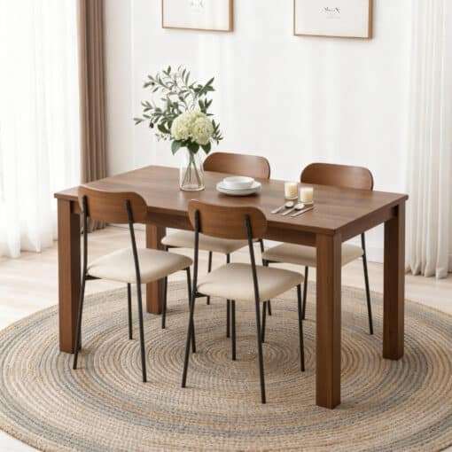 כיסא פינת אוכל מרופד עם גב עץ אגוז בעיצוב מודרני ומינימליסטי – הבחירה המושלמת לכל פינת אוכל ביתית. הכיסא מציע שילוב ייחודי של גב עץ בגוון אגוז יוקרתי ומושב מרופד בבד סינטטי רך ועמיד.