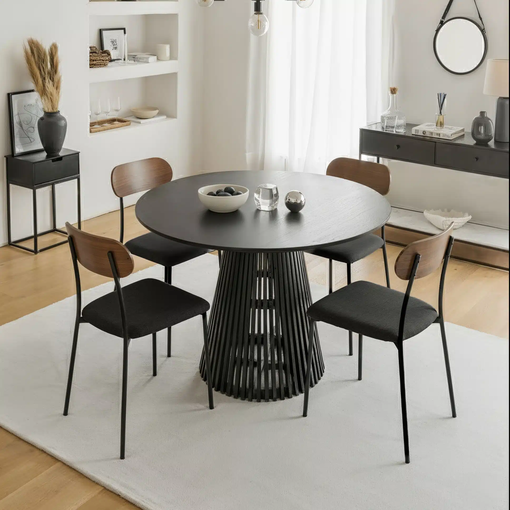 - שחור – גוון קלאסי ועוצמתי, יוצר ניגודיות חזקה ומודרנית עם כל שולחן אוכל