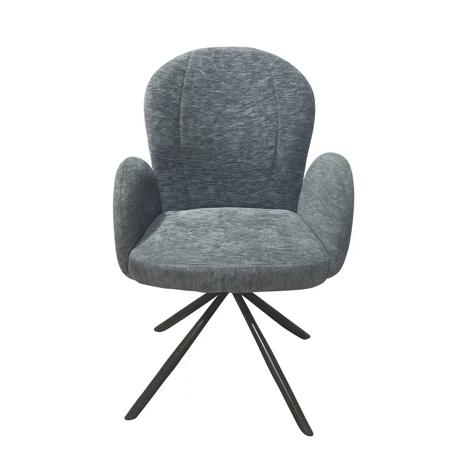 העיצוב המודרני והנקי של הכיסא פינת אוכל מסתובב עם ידיות בולט בקווים עגולים ונדיבים המעניקים לו מראה ייחודי ומושך. גב הכיסא המעוגל והגבוה מספק תמיכה מעולה לגב ולכתפיים, בעוד שידיות הכיסא המרופדות מוסיפות תחושת חיבוק ורווחה. בסיס המתכת החזק בגוון שחור מעניק יציבות מרבית ומשלים את האסתטיקה המודרנית של הכיסא.