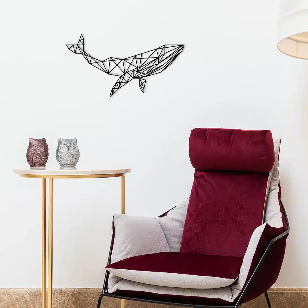 תקציר מוצר – קישוט קיר מתכת לווייתן גיאומטרי